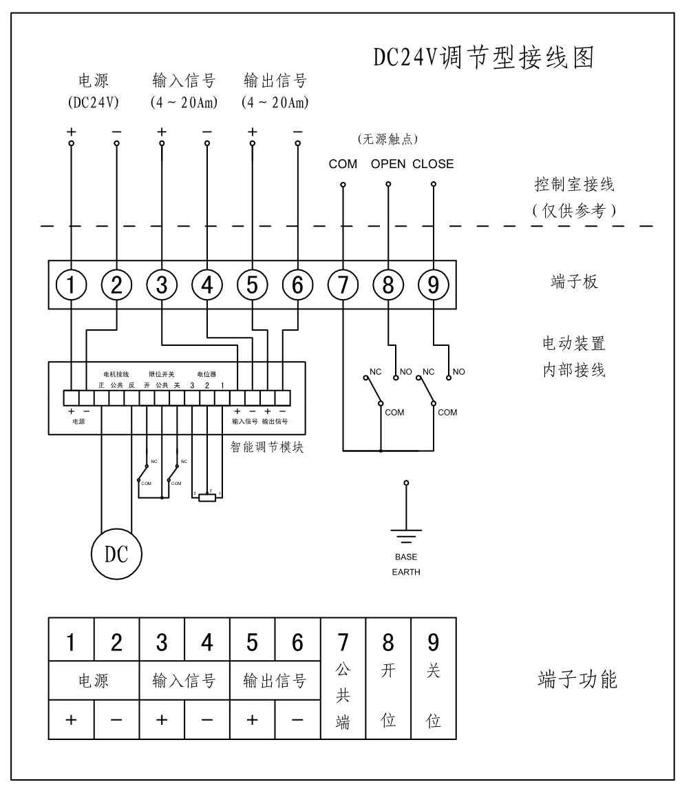 電動球閥不僅是節(jié)流、切斷、通斷、截止、轉流的好產品,近來的發(fā)展已將球閥設計成使它也具有節(jié)流和控制流量之用。接收工業(yè)自動化控制系統(tǒng)的4~20mA信號來精確控制閥門開度,從而達到流量、溫度、壓力等不同工藝參數(shù)的調節(jié)和控制。對于它們不同的接線方式,就起到一個及其重要的作用,以下為廣大用戶以(DC24V)為例,做個簡單描述以做為參考!